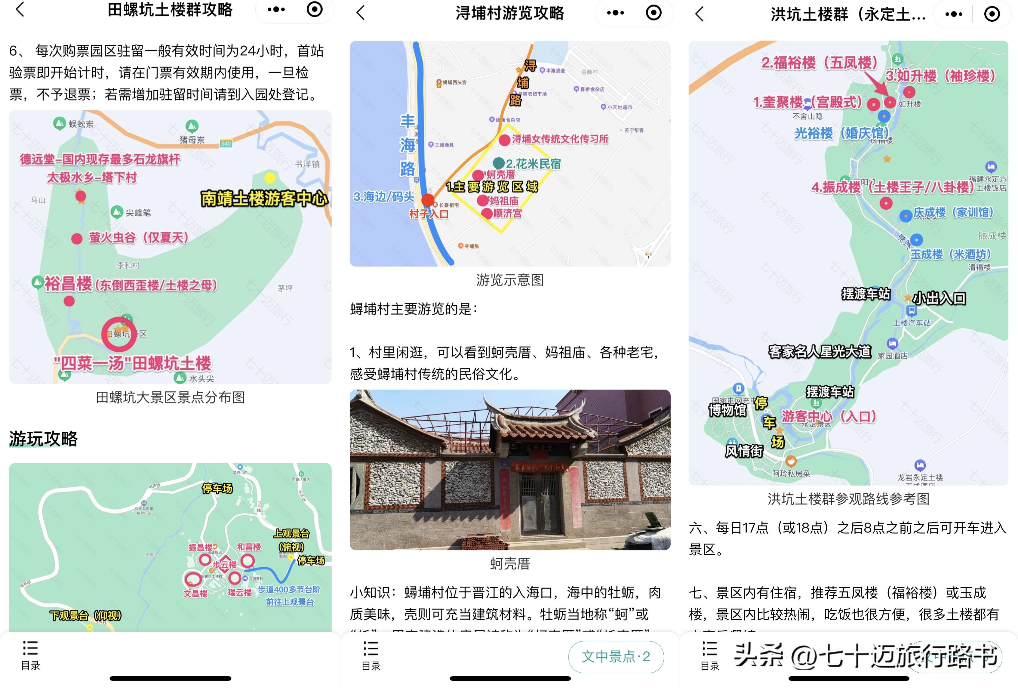 永定土楼(属于龙岩市)和南靖土楼(属于漳州市),是有N多土楼群组成,不是具体一个景点,每个地区都包含很多土楼群(土楼村落),有的免费开放,有的正式景区,各有特色。